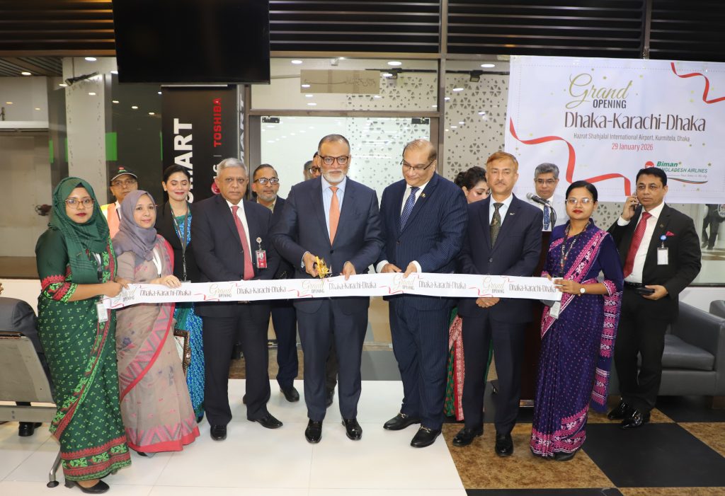 Mian Munir Ahmed Editor business desk Biman Bangladesh Airlines has launched direct flights on the Dhaka–Karachi–Dhaka route.Today, 29 January, the first flight from Dhaka, BG-341, departed for Karachi at 8:00 PM.On this occasion, an inauguration ceremony was held at Hazrat Shahjalal InternationalAirport. The event was attended by Mr. Sheikh Bashir Uddin, Honorable Adviser, Ministry ofCivil […]