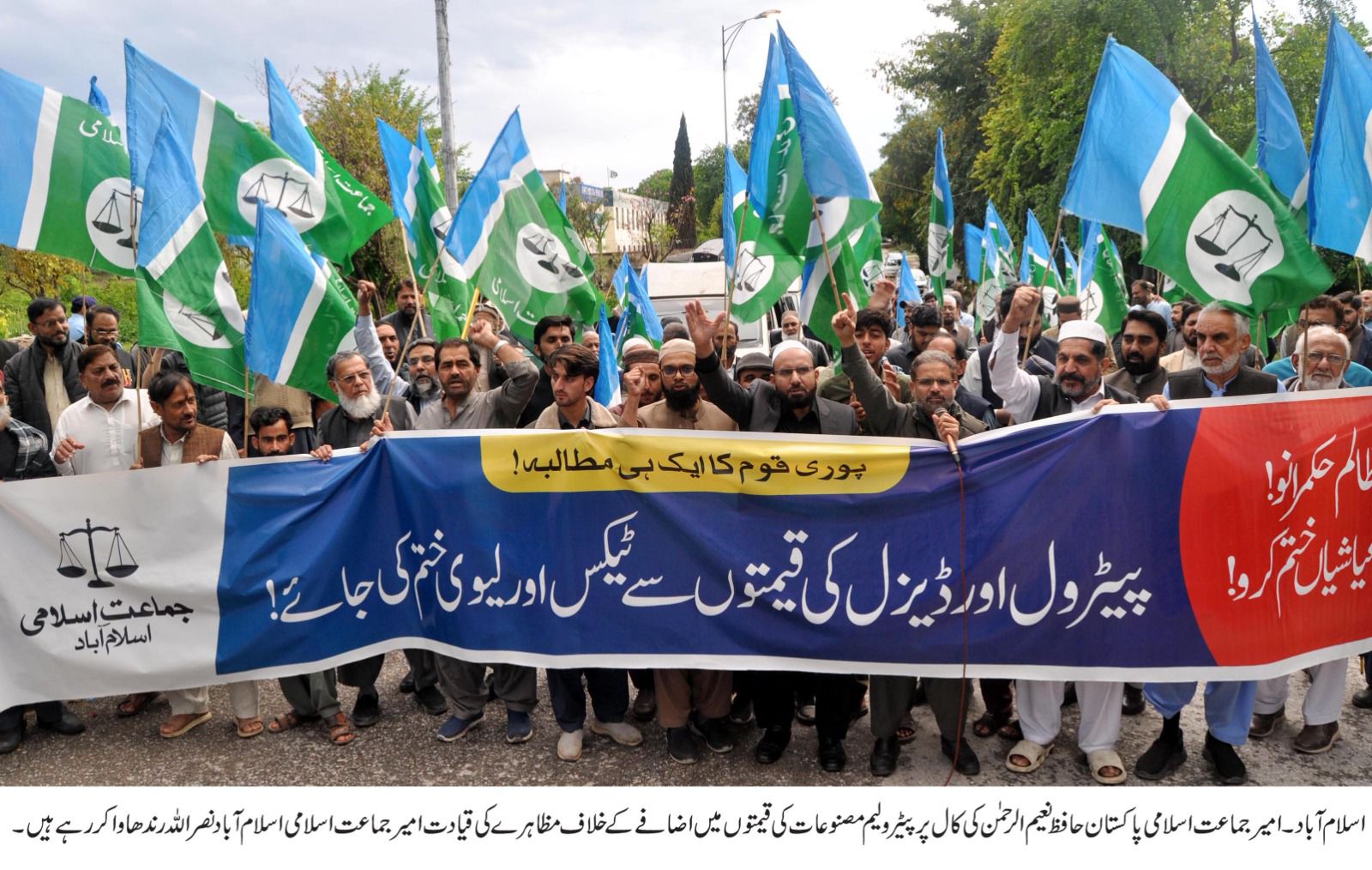 On the appeal of Jamaat-e-Islami Pakistan Ameer Engineer Hafiz Naeem ur Rehman, a protest demonstration was held at the National Press Club Islamabad against the massive increase in petrol and diesel prices.