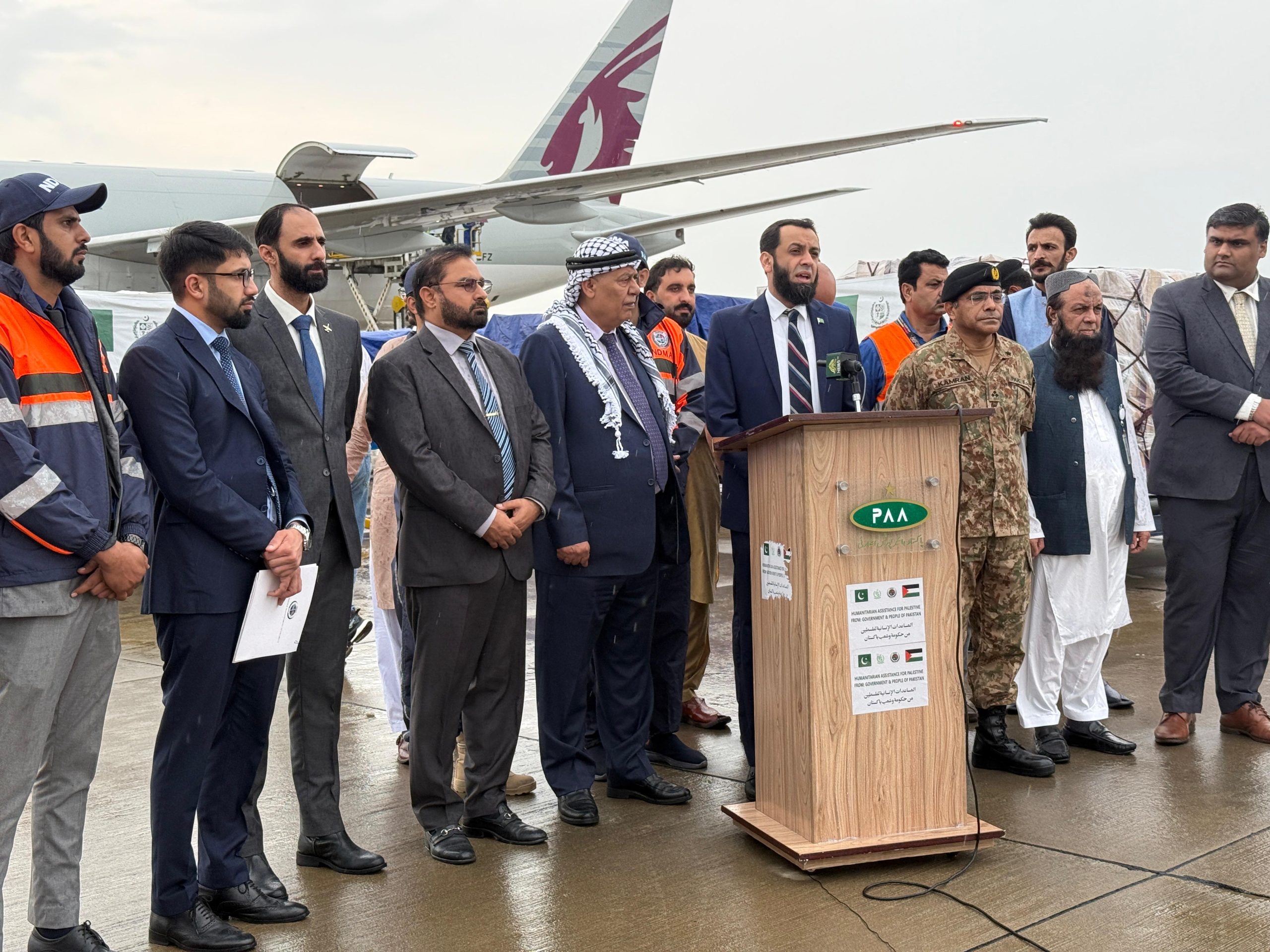 The ceremony was attended by senior officials from the Ministry of Foreign Affairs, the NDMA, and the Ambassador of Palestine to Pakistan.